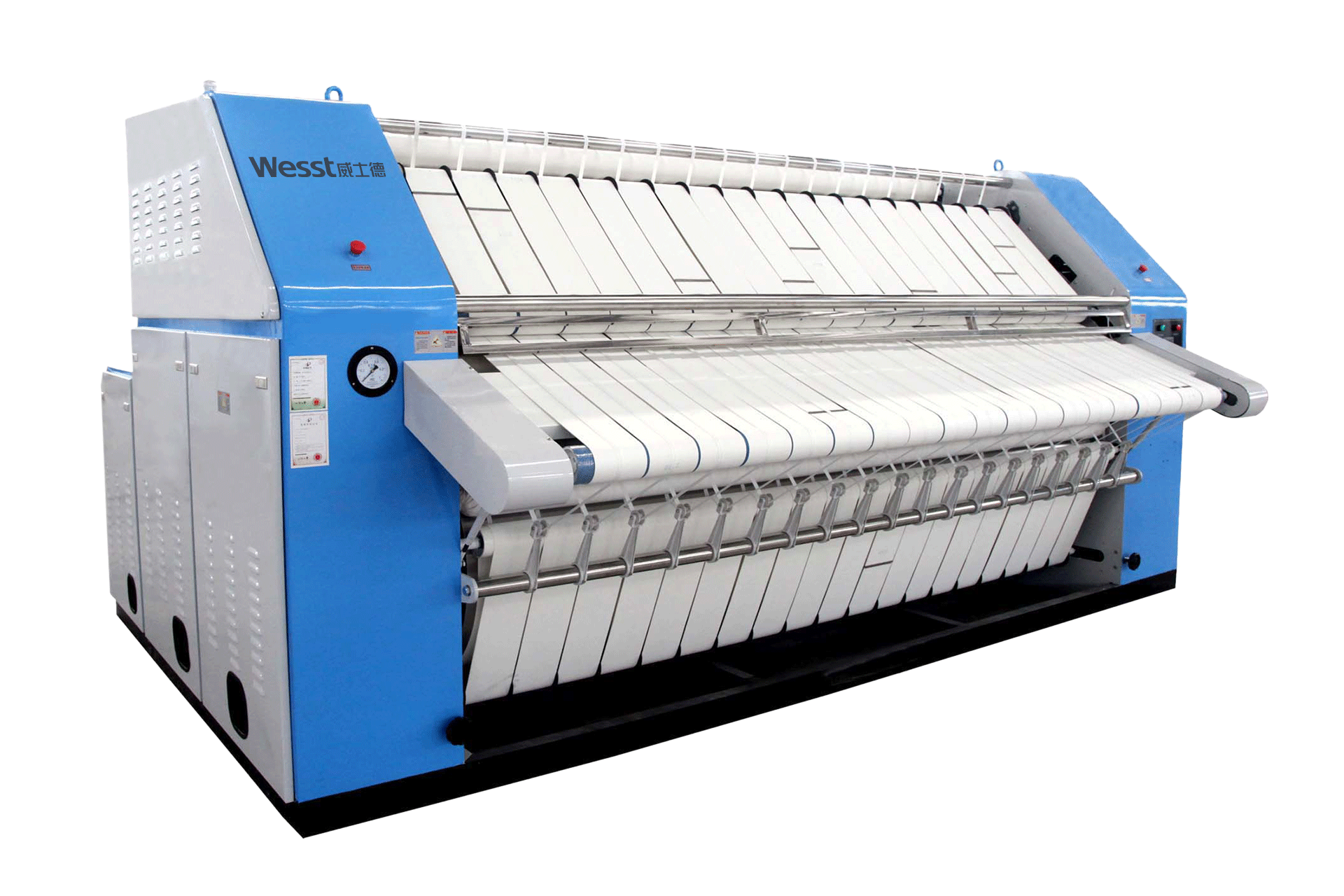 1.工業(yè)燙平機(jī)滾筒采用不銹鋼精制而成,具有加熱快、織物易干易平。