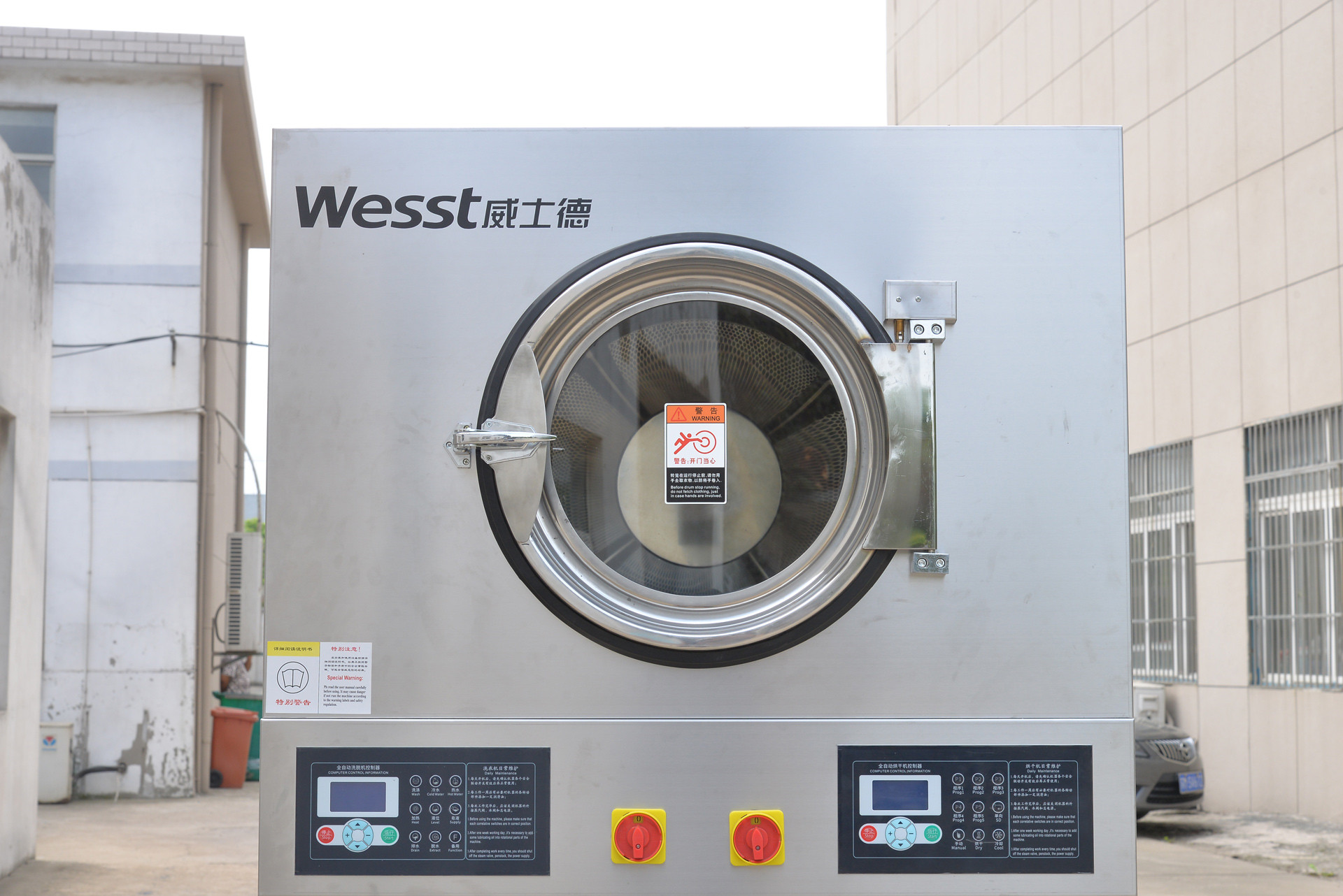 2、水洗、脫水、烘干采用電腦板集中控制。一臺機器代替?zhèn)鹘y(tǒng)的洗脫機和烘干機兩臺機器。整機結(jié)構(gòu)合理、緊湊,占地面積、占用空間節(jié)省。